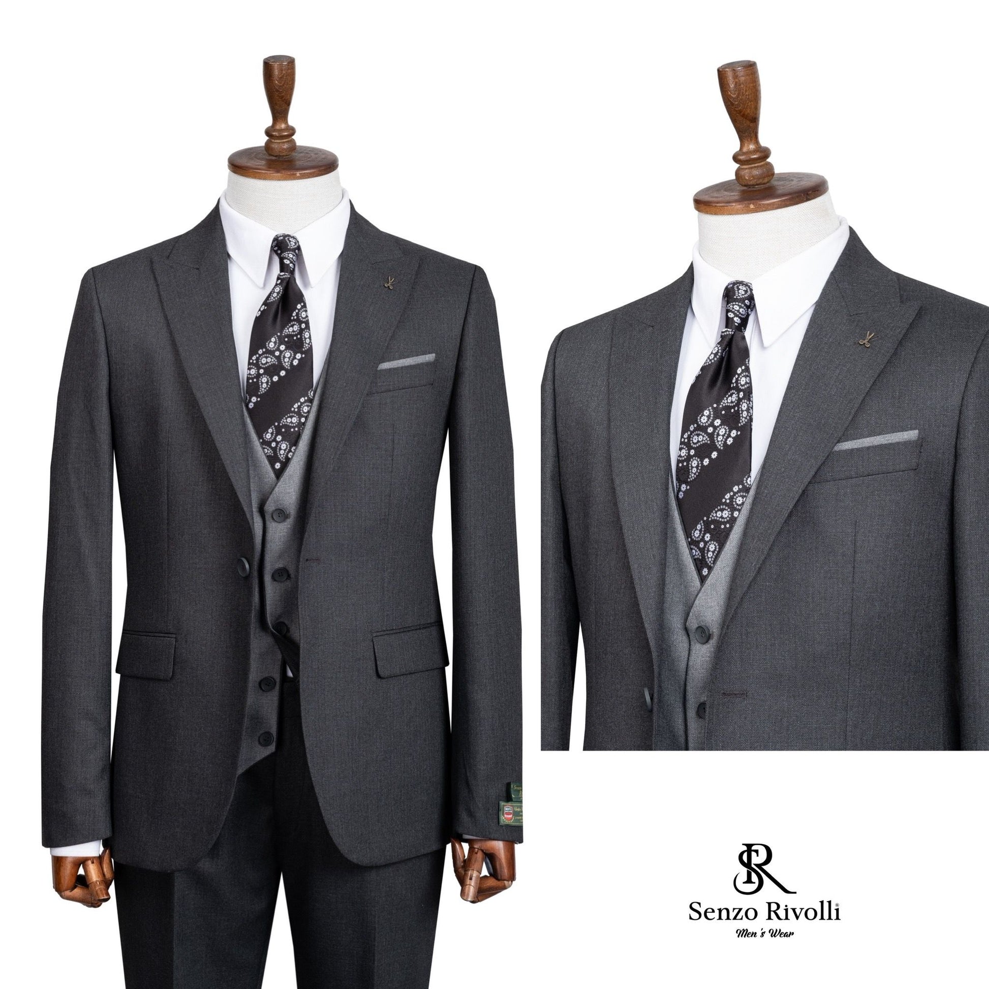 * Sharp, Modern, and Impeccably Tailored ,the three-piece suit is the definitive choice for formal elegance, offering a powerful, cohesive look that is instantly elevated by the inclusion of the matching waistcoat. This specific model is a modern take on classic formalwear, blending high-impact styling with a sleek, ready-made fit.