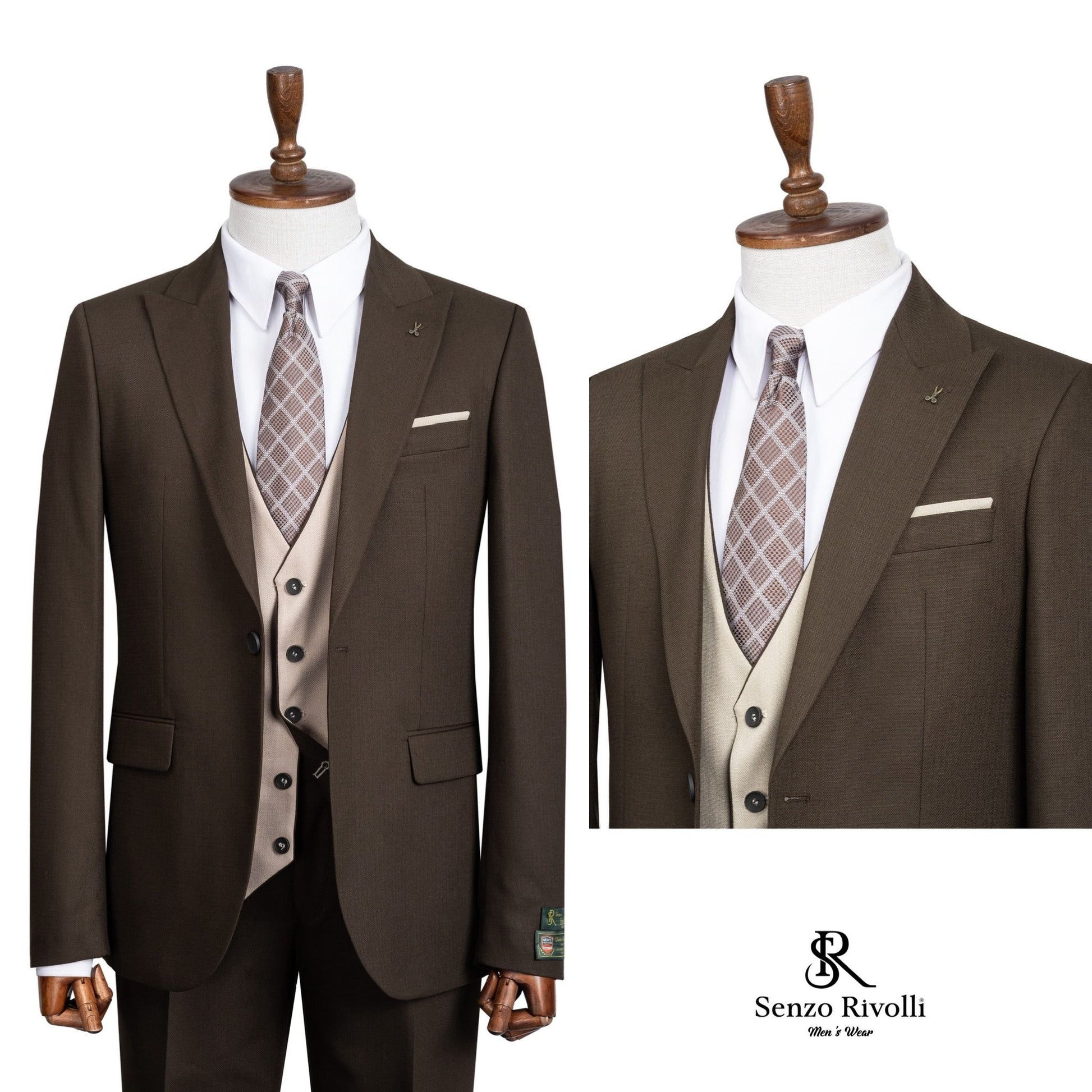 Rich Brown and Beige Two-Tone Three-Piece Suit.